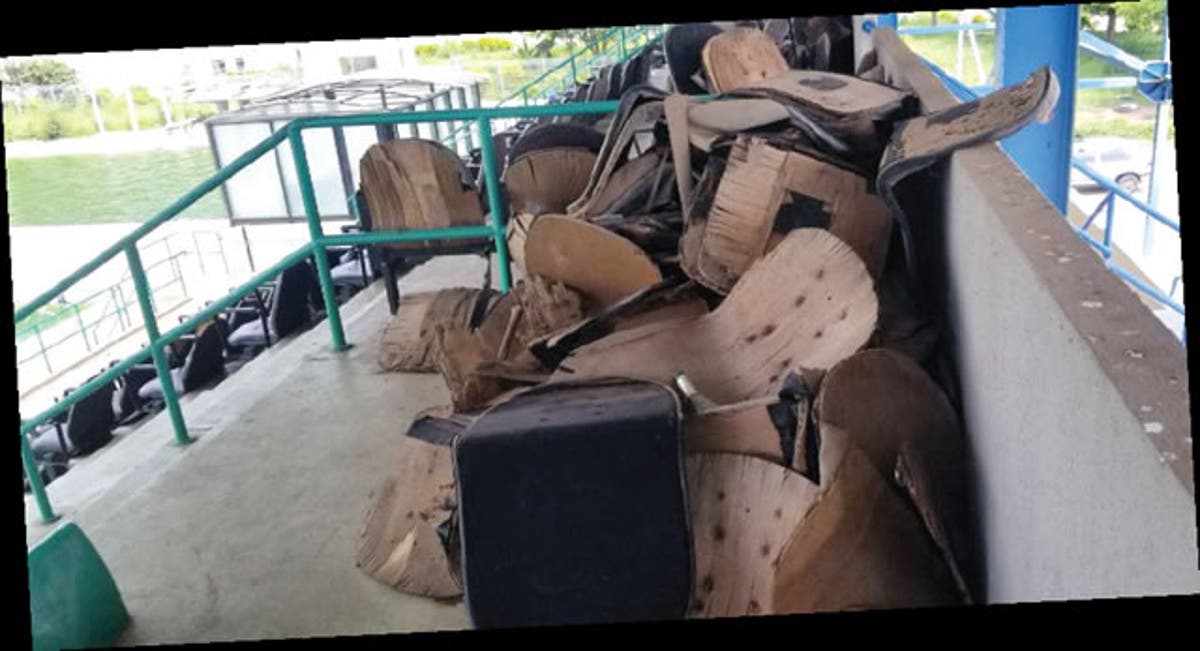 Many of the seats at the spectators’ section have been badly damaged, while the bad ones were simply dumped on the top deck in a messy lump.
